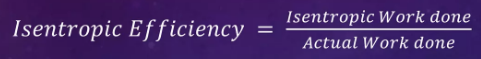 isentropic efficiency는 thermodynamic device가 얼마나 효율적으로 에너지를 전환하는지를 보여주는 척도로서 등엔트로피라는 이상적인 성능에 대한 실제 성능을 나타낸다. 따라서 이상적이며 가역 단열공정으로부터 실제공정이 얼마나 많이 이탈되어 있으며, 이상적인 최대 운전점 대비 얼마나 device가 잘 운전되는지를 보여준다.