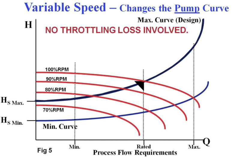 variable speed controller인 inverter는 fixed speed controller와 달리 매우 intelligent하고 공정 변수를 원하는 수준에서 유지하도록 펌프의 performance를 자동적으로 adjusting한다. 이를 통해 에너지를 낮추어 결국 운전비를 줄일 수 있다. variable speed controller는 dry running이나 current overload로부터 펌프를 보호할 수도 있다.