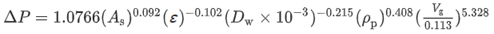 여러 문헌에도 실험적으로 wet pressure drop에 대한 관계식이 있지만 이는 특정 시스템이나 특정 운전 변수 등에 적용된다. Demister pressure drop은 specific surface area (As), void fraction (ɛ), wire diameter (Dw), packing density (ρp), and superficial gas velocity (Vg)의 함수이다.