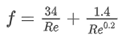 차압 단위는 Ibf/ft2이고 f는 Friction factor, H는 demister 두께, As는 demister의 specific surface area이고, Vg는 superficial gas velocity이고, ρg는 gas density, g는 중력상수이고, ɛ는 void fraction이다. friction factor는 Re의 함수로서 아래 table에서 구할 수 있다.