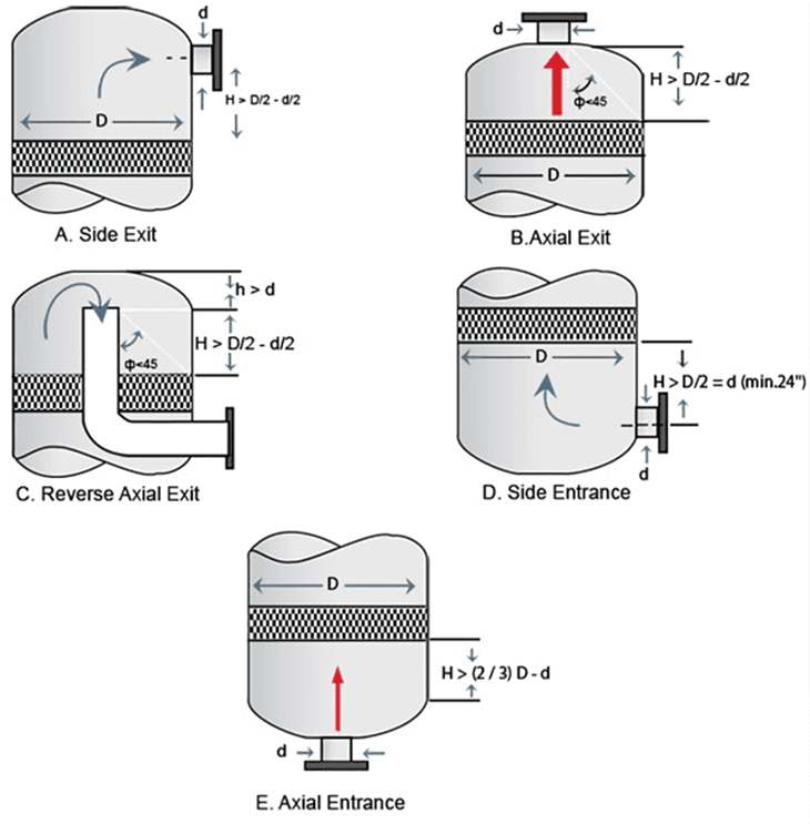 Pad는 gas leak가 일어나지 않도록 clearance없이 wall에 밀착하게 설치하고, 높이는 보통 100~150mm가 일반적이며 반면 가스나 스팀 flow내 응축을 통해 생성된 매우 미세한 droplet이 있을 경우 pad높이는 더 크거나 multi layer로 설치한다.