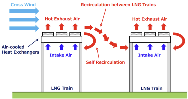 공기 입구측 평균 온도와 대기온도를 비교해 보면 공기 재순환이 일어나고 있는지 알 수 있어서, 이로 인한 열효율 감소를 없애기 위해 주변 air cooler로부터 더운 공기가 유입되지 않도록 초기 배치시 고려가 되어야 한다.