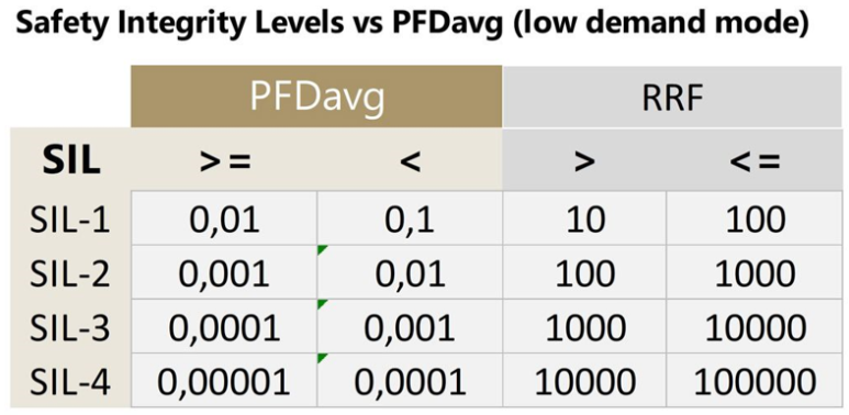 SIF가 SIL1이라면 위험을 최소 10배 줄일 수 있고, SIL2라면 최소 100배 줄일 수 있고, SIL3라면 최소 1000배를 줄일 수 있다는 의미이다.