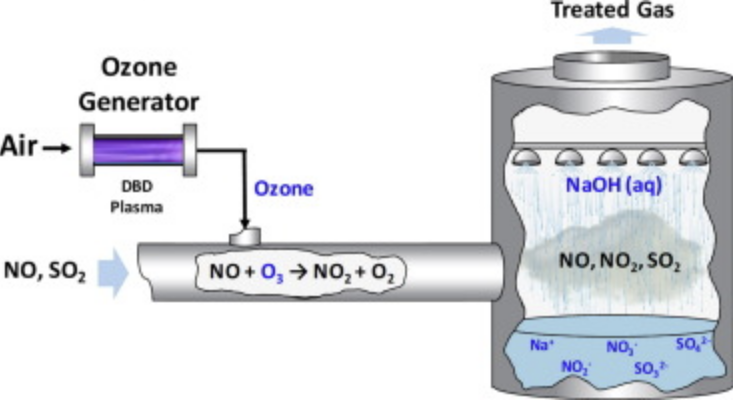 대기오염물질인 NOx를 제거하기 위한 기술로 암모니아수나 요소수로부터 만든 암모니아 가스를 이용하거나 오존을 이용할 수 있다.