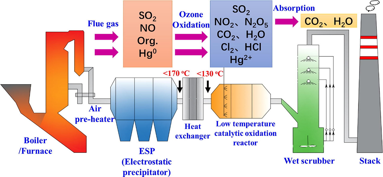 반면 산화제로 오존을 이용할 경우 NOx에 대한 강한 산화특성이 있고 반응이 빠르며 제거효율이 높다. 단점으로는 설비 투자비가 높고 에너지 소모량이 많으며, 대형 배가스 처리 설비에는 적용하기 어렵다.
