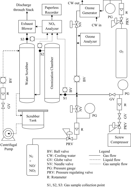 O3 산화를 통해 NOx를 효율적, 경제적으로 제거한다. NO가 O3와 산화반응을 하여 N2O5가 생성되며, 이는 수용성이라서 후단의 scrubber에서 제거할 수 있다. 아울러 NO가 오존과 산화 반응을 하여 NO2와 O2가 되며, 이는 환원공정을 통해 N2로 전환이 되어 대기 배출된다. stack에서의 NOx 배출량을 기준으로 오존 주입량을 cascade제어를 할 수 있다.