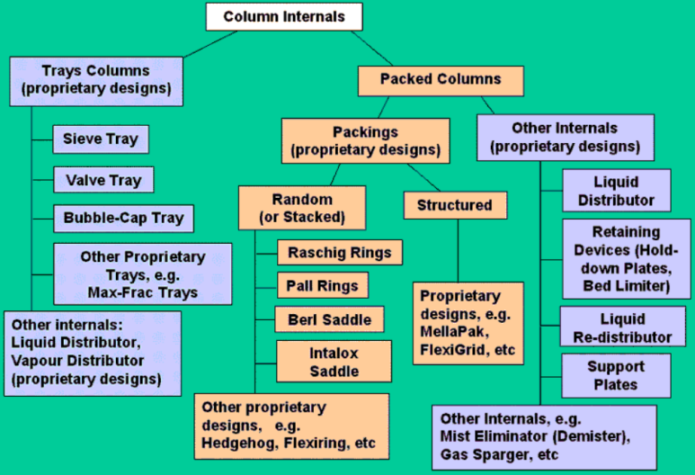 V/L contact의 효율을 높여주는 packing이나 tray에 대한 분류는 아래와 같다.
