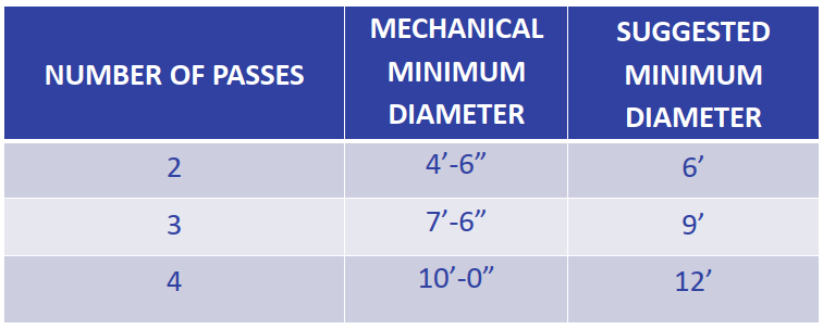 weir load < 80gpm/ft for one pass, <120gpm/ft for two or more pass