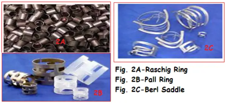 packing종류로는 Raschig rings, Pall rings, Berl saddles, Intalox saddles 등이 있다.