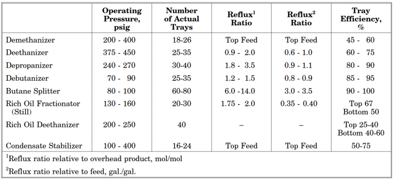 Reflux/Feed flow (BPD), d: diameter (ft)