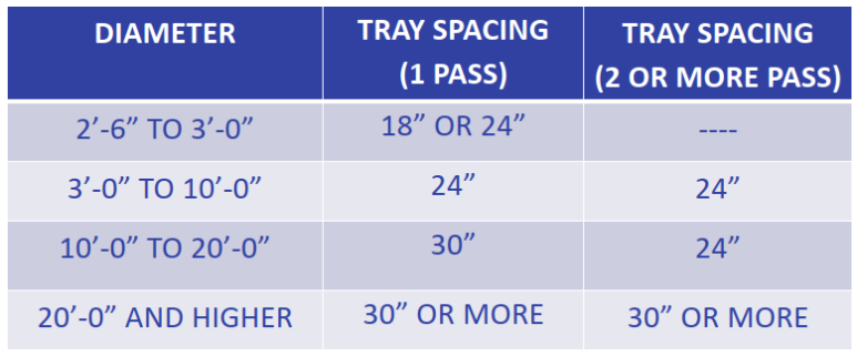 tray종류로는 sieve trays, bubble cap trays, valve trays가 있다.