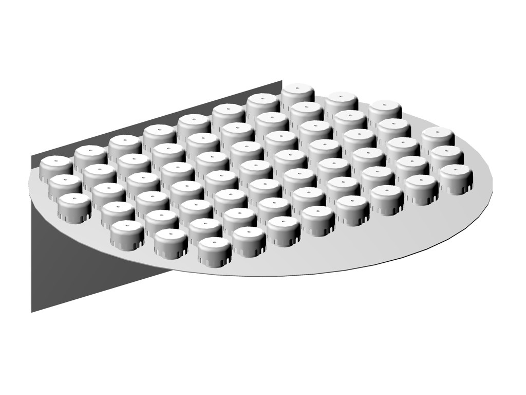 Bubble cap tray는 올라오는 증기를 미세한 bubble이나 droplet형태로 액체속으로 분산시킨다. 증기유량이 낮을 때 기상을 통한 drainage인 weeping을 방지하지만, 비용이나 차압이 커서 잘 사용하지 않는다. 액체 및 증기 유량이 적을 경우에 적합한 type으로, turn down ratio가 클 경우 고려한다.