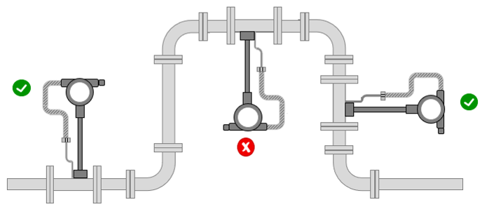 가스를 측정할 때 배관내 액체가 accumulation되지 않아야 한다.