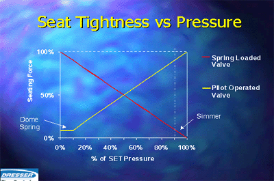 위 그림을 통해 pilot valve가 set pressure에 근접해서도 seat tightness가 좋아 leak없이 운전이 가능하다는 것을 보여주고 있다. 즉, set pressure의 98%에서도 tightness가 우수하여 압력이 증가시에도 leak없이 운전이 가능하다.