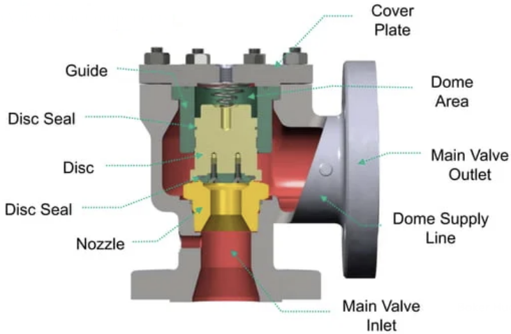 dome pressure가 감소하게 되면 main valve가 열린다.