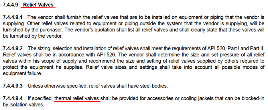 API611에 relief valve가 언급되고 있지만 이는 oil system에 설치되는 relief valve이다.
