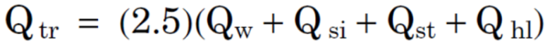 재생가스 유량을 결정하기 위해 먼저 재생에 필요한 total load를 계산한다. 아래 식의 2.5는 재생기간 동안 시간에 따른 bed를 통한 온도차이의 변화를 보정한 것이다.