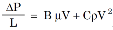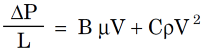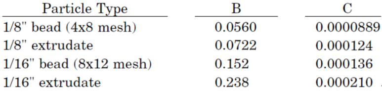 다음은 bed를 통한 차압을 계산하며, selected diameter에서의 차압은 아래 식을 통해 계산된다.