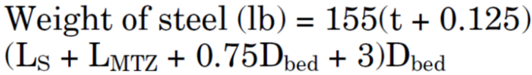 아래 식의 0.125는 부식여유율로서 inch단위이다. 0.75는 tower head에 대한 무게를 고려한 것이며, 3은 inlet distributor, support ball, hold down ball에 대한 공간 높이를 의미한다.