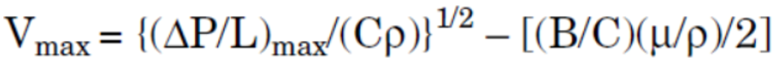 Min superficial velocity는 아래 식을 이용하되 max값을 min값으로 고려하여 적용한다.