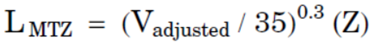 MTZ의 길이는 아래와 같이 계산한다. Z의 경우 1/8” sieve일 경우 1.7ft, 1/16” sieve일 경우 0.85ft를 적용한다.