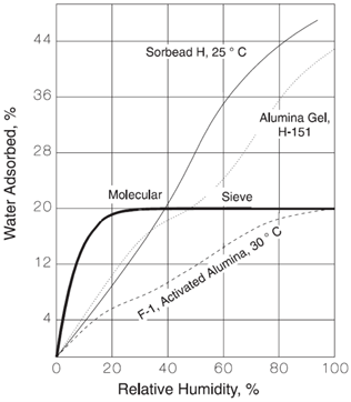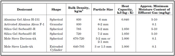 silica gel이나 alumina gel은 effluent gas내 water content는 최소 5~10mg/kg이지만, activated alumina나 mol sieve는 최소 0.1mg/kg이다.