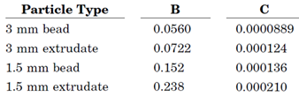 Bed를 통한 allowable superficial velocity를 estimation하고, 이후 아래 modified Ergun equation을 이용하여 superficial velocity (V)과 연관된 pressure drop을 계산한다.