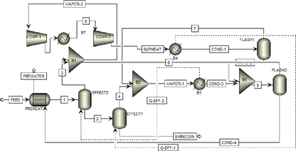 target농도에서 정상상태에 도달되면 농축된 폐수는 순환 loop로부터 퍼지가 되며, energy balance에 의해 부족한 에너지는 전기나 외부 스팀에 의해 공급될 수도 있고, 잉여 에너지는 system밖으로 배출될 수도 있다.