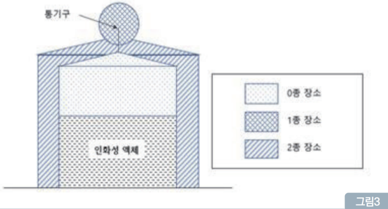 [그림 3] 인화성 액체 저장탱크의 폭발 위험장소 구분(예시)
