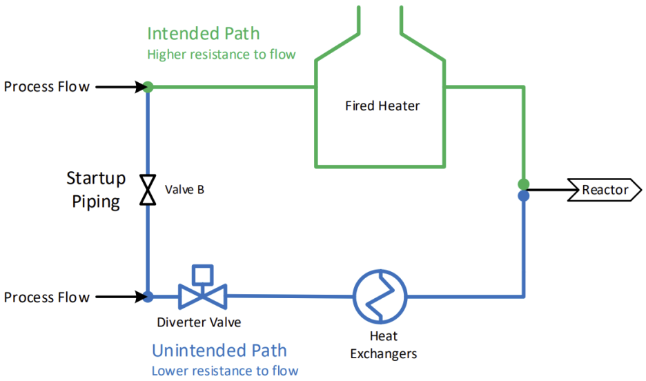 Simplified diagram of the two potential flow paths introduced by the open Valve B. (Credit: CSB)