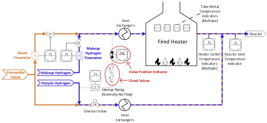 Reactor preheat section simplified process flow diagram, normal operation. (Credit: CSB)