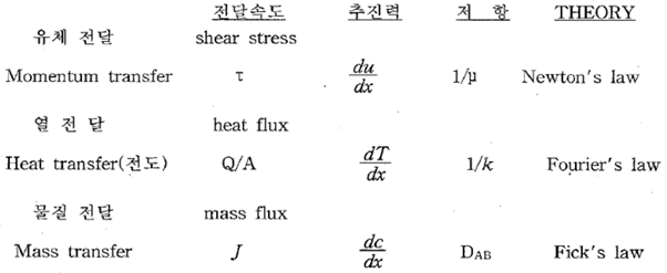 모든 전달 현상은 저항에 대한 추진력의 비로서 정의된다.