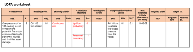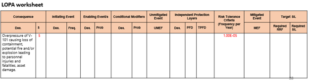 아울러 표준화된 initiating event frequency, 표준화된 enabling event나 condition, IPL에 대한 표준화된 PFD값, safeguard에 대한 검증 (독립성, 효용성), 높은 빈도의 IPL에 대한 PFD계산 기준, 표준화 table에 없는 IPL에 대한 PFD값 적용방법, consequence category 구분 기준, consequence frequency 계산 기준, 점화확률과 같은 consequence factor probability에 대한 기준, risk tolerance criteria에 대한 위험성 평가 (추가 action 필요여부 결정), LOPA 시나리오에 대한 documentation 절차, LOPA recommendation을 close하는 절차, LOPA결과가 제대로 이행되고 있는지에 대한 auditing 등에 대해 단계별 절차를 develop한다.