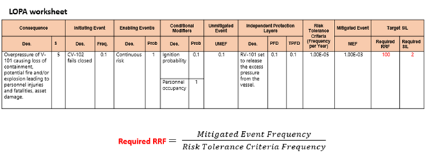 * IEF, IPL의 PFD값들을 곱해서 mitigated event frequency를 계산한다. EC (Enabling Condition)과 CM (Conditional Modifier) 정보가 있다면 함께 활용하여 계산이 이용할 수 있다. IPL PFD값을 제외한 IEF, CM, EC의 값들을 곱한 것이 Unmitigated event라고 함.