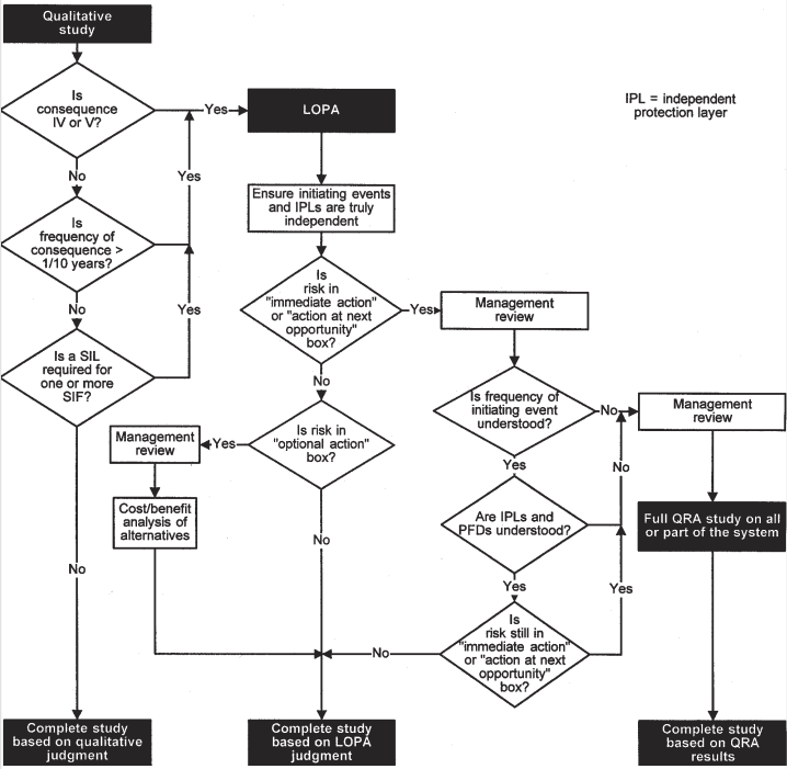 시나리오의 위험도에 따라 LOPA를 적용할 수도 있고 QRA를 적용할 수도 있다.