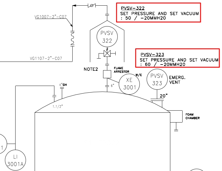 tank로부터 배출되는 liquid movement 최대양이나 외기 조건에 의해 breather valve의 vacuum load를 초과하는 것으로 예상이 될 경우 tank의 붕괴를 막기위해 EVC에 vacuum기능을 추가해야 한다.