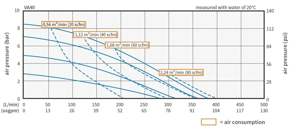 또한 air driven diaphragm pump performace curve를 통해 pump의 운전범위, 성능 그리고 air 소모량에 대한 정보를 얻을 수 있다. 이를 통해 pump의 capability를 개선하고 운전을 최적화할 수 있다.