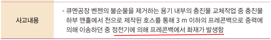 용기 충진물 교체작업 중 화재 사고