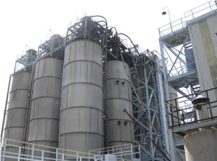 사일로의 재질은 알루미늄으로서 직경 5m, 높이 21.9m, 용량 400㎥의 원통형 모양이었음.