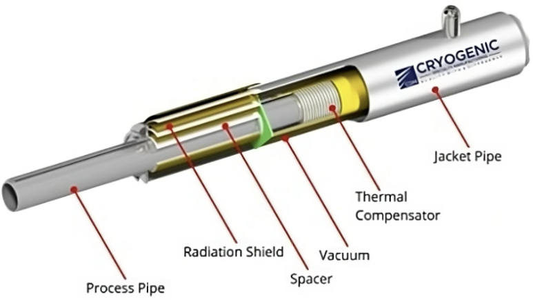 Vacuum insulated pipe는 inner pipe, outer pipe 그리고 그 사이에 vacuum space가 있어서 외부로부터 열전달을 최소화할 수 있다. 장점으로는 열유입에 따른 액화가스의 증발 issue를 없앨수 있으며 gas leak가 최소화되어 안전도를 높일 수 있다.