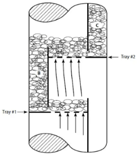 반대로, downcomer 아래쪽 끝 단이 너무 많이 내려오게 되면, Pressure drop의 증가로 인하여 윗 단의 liquid가 아랫단으로 적절히 흐르지 못하여, flooding을 야기 할 수 있다. 이렇게 발생한 flooding은 다시 tray deck 2에 영향을 미쳐 downcomer C에도 flooding이 발생한다. 즉, flooding이 발생하면, 그 단을 기준으로 위쪽 모든 tray가 flooding이 발생하며, 반대로 flooding이 발생한 단 아래쪽으로는 liquid level을 모두 잃어버리는 dry out 상태가 된다.