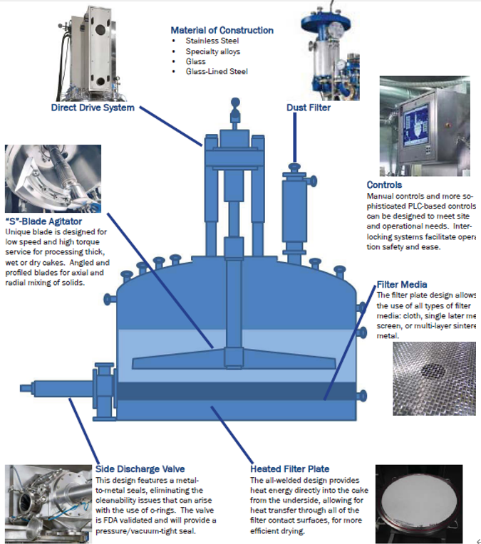 - 교반 기능이 있는 모델은 필터 케이크를 뒤집어주거나 부수면서 더욱 균일하고 효율적인 건조를 도움.