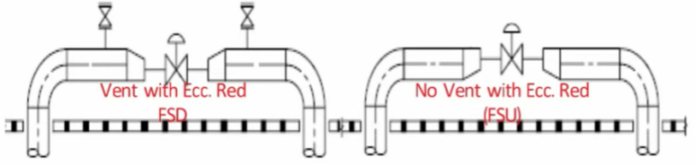 Control valve assembly가 elevated location에 설치될 경우 flat on top reducer를 설치하여 vent를 피할 수 있고, 또한 relief valve outlet line상 flat on top reducer를 설치하여 test용 vent를 피한다.