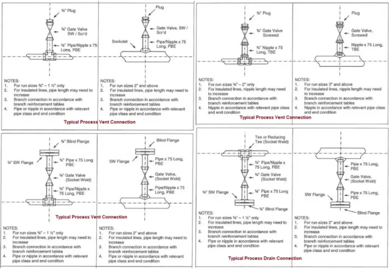 아래는 typical process vent drain의 assembly detail을 보여준다.