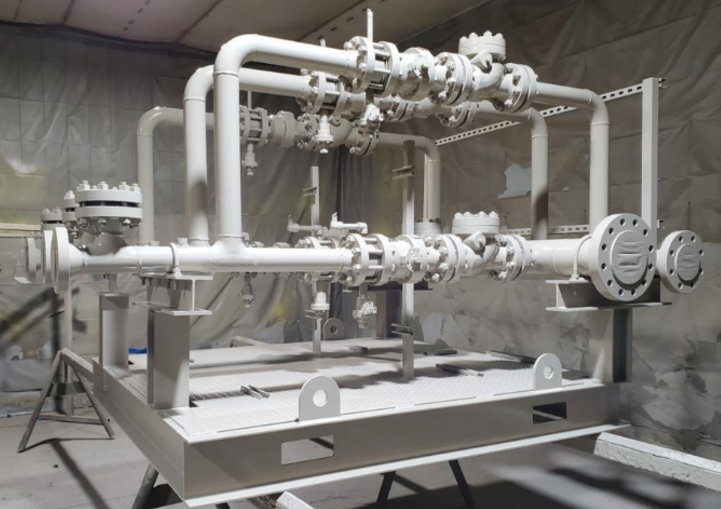 Stick-built construction인 On site fabrication process를 줄이기 위해 vendor shop에서 미리 모든 component에 대해 assembly를 완료 후 현장에 delivery를 하여 공사기간을 단축할 수 있다. 이는 단순 공사기간 단축뿐만 아니라 현장에서 복잡한 조립과정의 위험한 환경 및 loss부분에 대한 관리 등 risk도 줄일 수 있다. 아래는 전형적인 modular process skid를 보여준다.