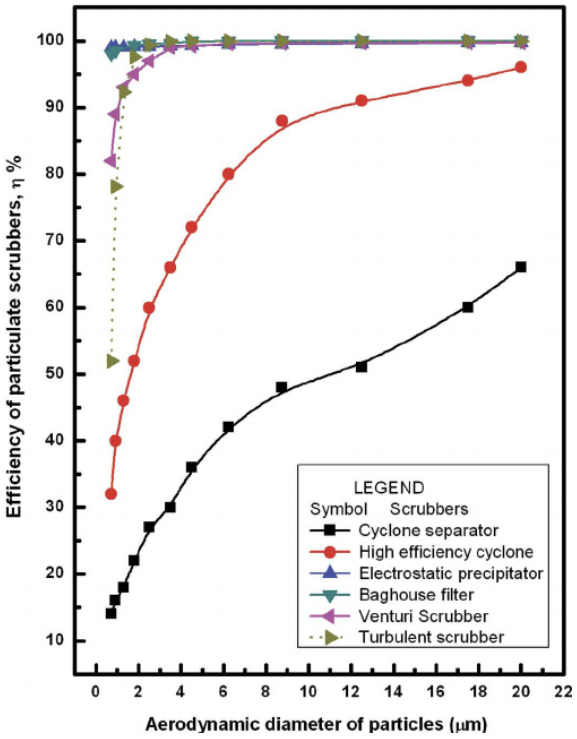 대량의 flue gas를 처리하기 위한 전기집진기는 높은 유속에서도 미세먼지를 고효율로 제거하며 비록 여과집진기보다 효율은 낮지만 0.6~2.4 m/s의 높은 유속에서도 95% 이상의 집진 효율을 갖는 전기집진기가 매우 효과적이다.