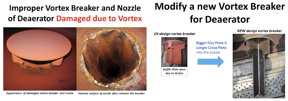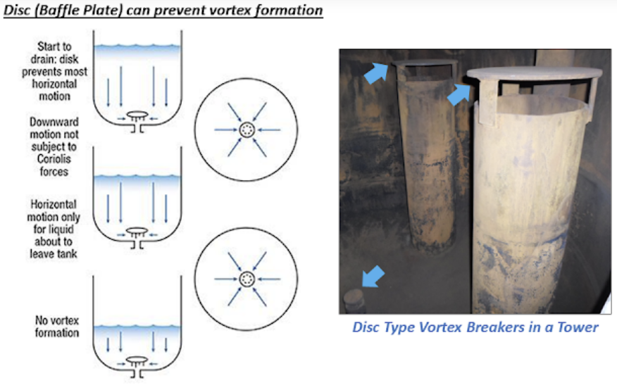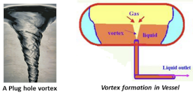 소용돌이가 형성되면 안정적인 흐름을 방해하고 액체내에 기체가 동반되어 two phase 흐름을 야기할 수 있으며, 증류탑 및 기액 분리의 성능을 저하시키고, 압력 감소에 따른 운전비 증가로 이어질 수도 있다.