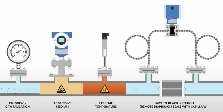 공정의 가혹한 환경에서도 압력이나 액위, 유량 등 측정의 정확도를 요구하여 diaphragm seal type이 많이 사용되고 있다. 이를 통해 전체적인 비용을 줄이고 생산의 downtime이나 shut down을 최소로 유지할 수 있다.