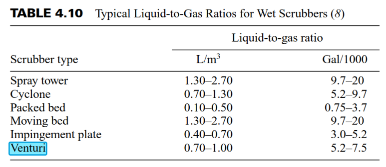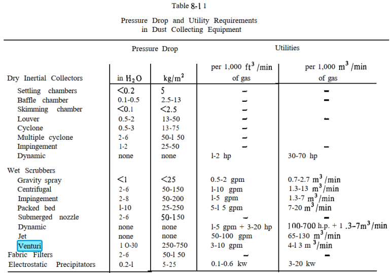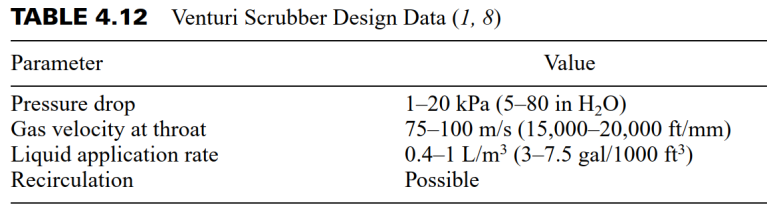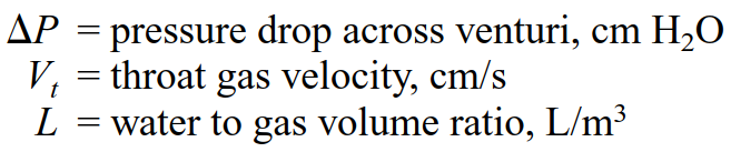 venturi pressure drop은 아래와 같이 추정할 수 있다.