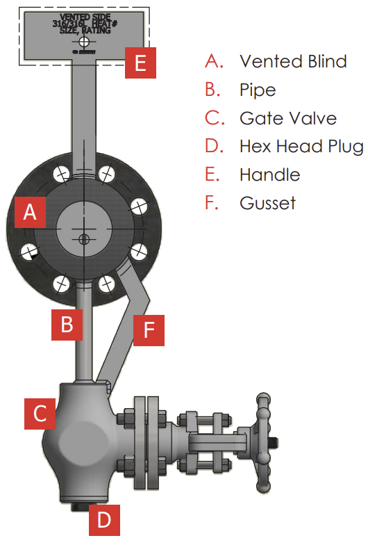 vented blind는 일반적으로 ASME B16.48에 준해 제작되며, 아울러 배관의 opening을 요구하는 maintenance전에 배관을 clearing하기 위한 밸브가 없을 경우 유용하게 적용할 수 있다.